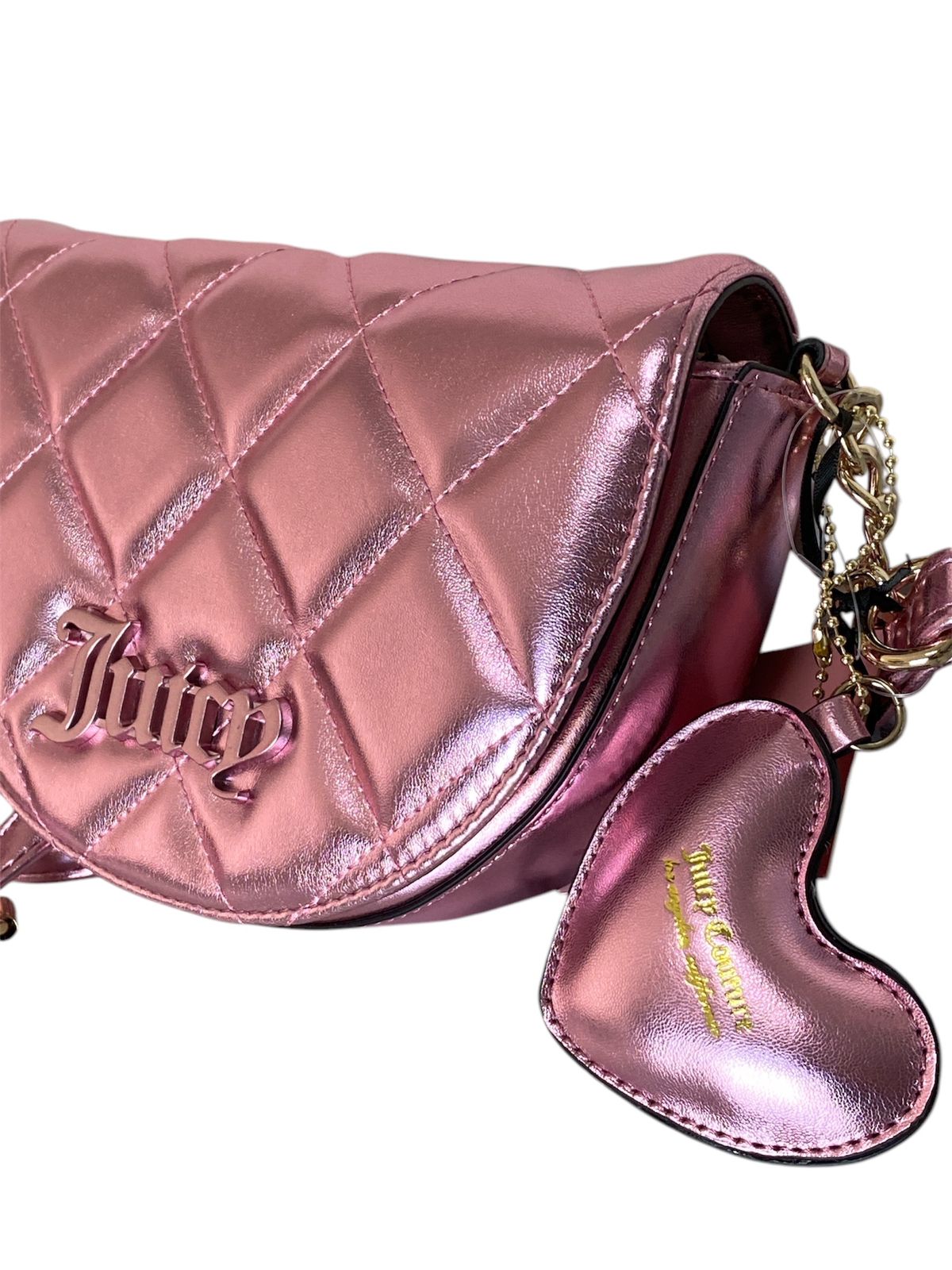Bolso Juicy Couture Acolchado Rosa Metálico con Colgante de Corazón