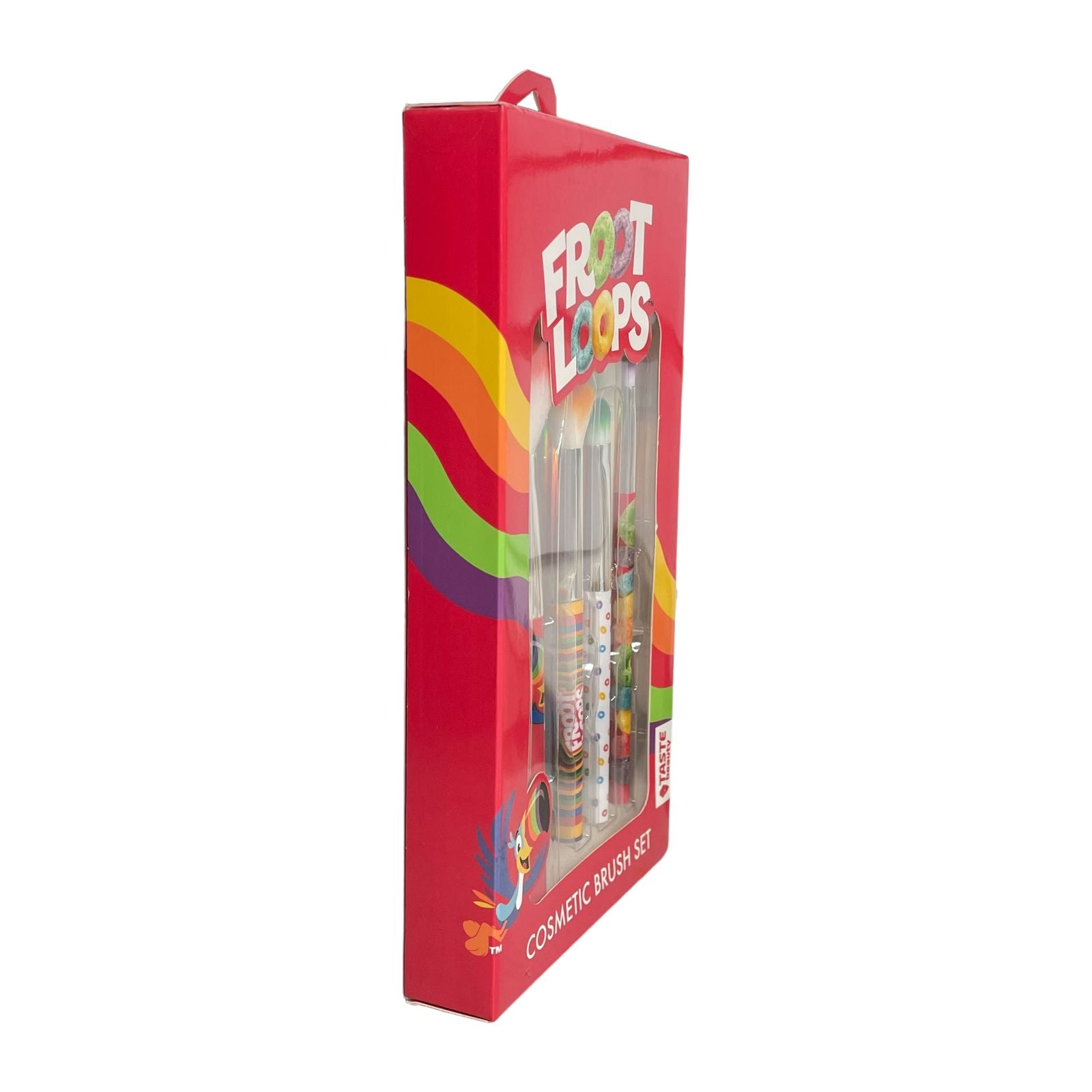 - Diseños Divertidos: Cada brocha presenta un diseño único inspirado en los colores y la diversión de los cereales Froot Loops.