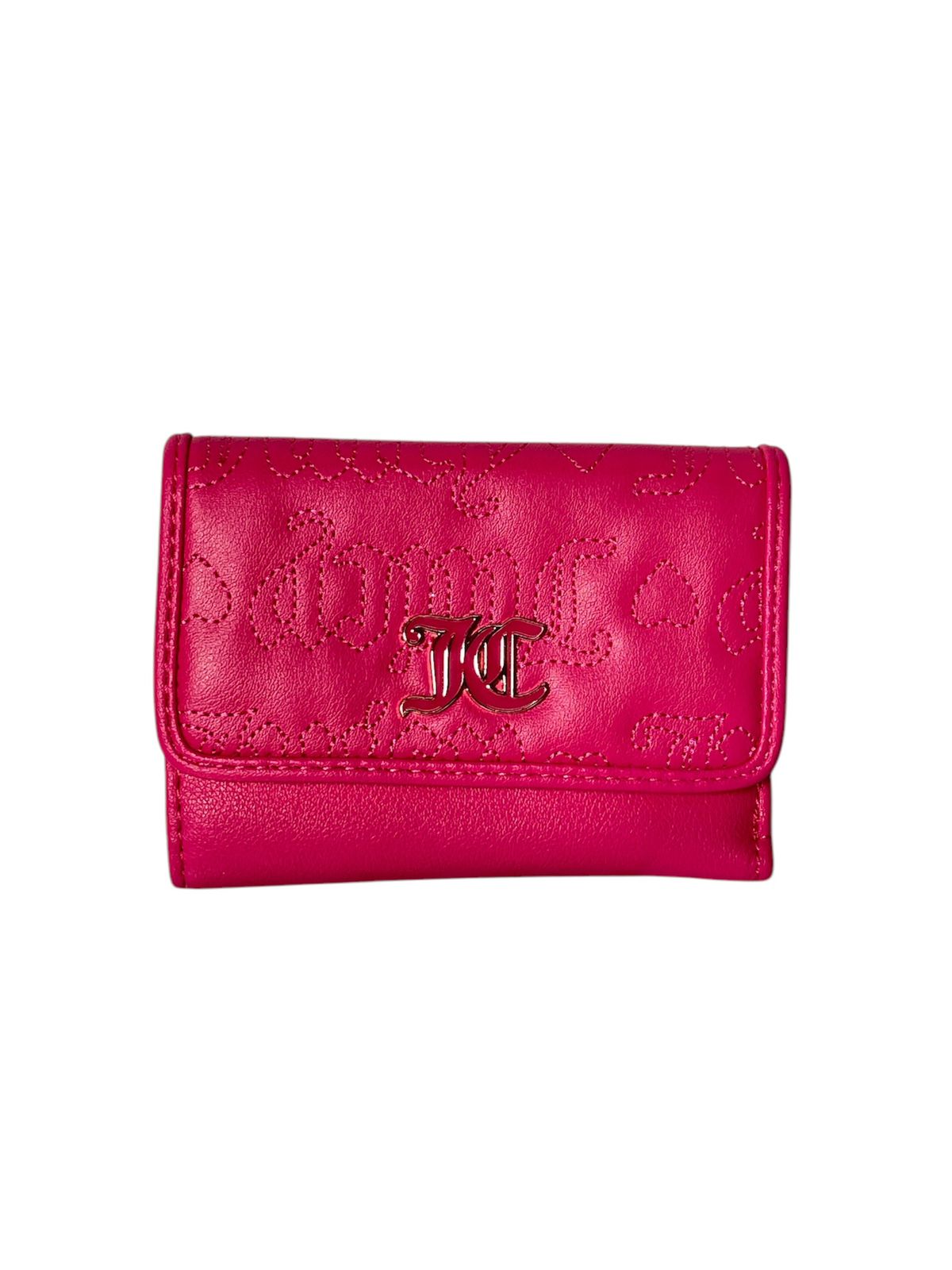 Esta cartera de Juicy Couture es perfecta para quienes buscan estilo y funcionalidad en un solo accesorio. Con su vibrante color fucsia y los icónicos detalles dorados, este monedero se destaca como un complemento de moda esencial. Fabricada con materiales de alta calidad, su textura y diseño grabado con el logotipo de la marca le otorgan un toque único y sofisticado.