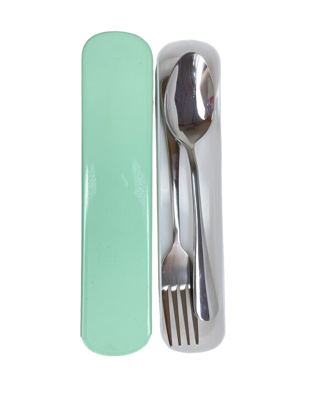 Juego Cuchara, Tenedor de Acero con Estuche Portatil.
